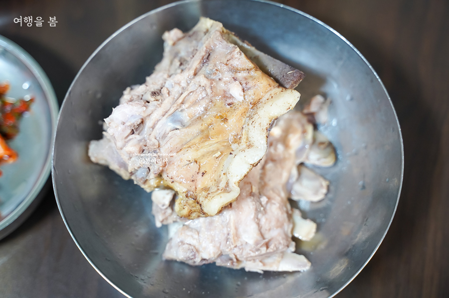 IMF부터 손님들에게 서비스로 주고 있고 국산 등뼈다. 하루에 삶을 수 있는 양이 정해져 있어 소진되면 먹을 수 없다. 너무 늦게 가면 못 먹는다.