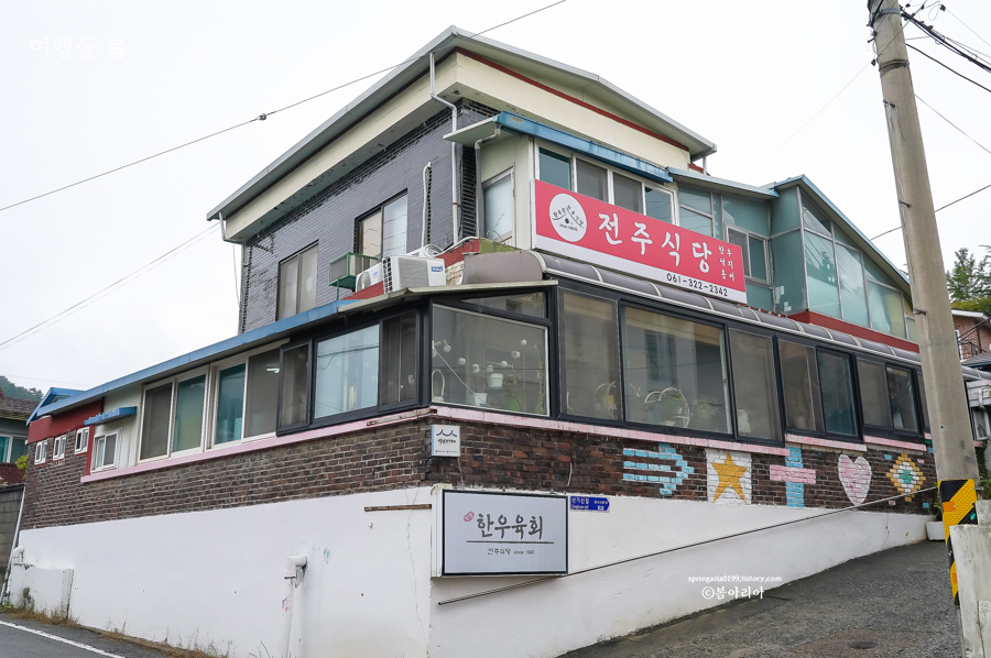 우리 선택은 함평 백년가게 중 한 곳인 '전주식당'이다. 비빔밥 종류와 가격은 같지만 전주식당은 돼지등뼈찜을 서비스로 준다. 돼지비계보다는 돼지등뼈가 좋으니까.