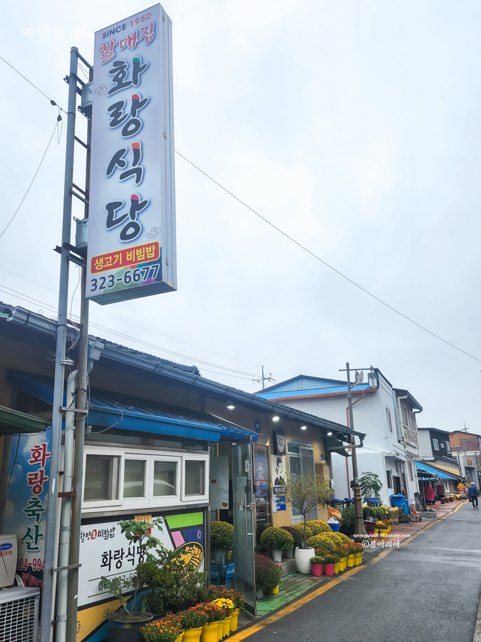 함평 육회비빔밥 거리에서 가장 유명한 곳은 화랑식당이다. 방송에도 많이 나왔고 함평 전통시장 바로 옆이라 주차나 접근성도 좋다. SINCE 1950이라니! 대단하잖아!! 함평 육회비빔밥 거리에는 '화랑식당', '초록식당', '정경복궁' 등 다양한 육회비빔밥 전문점이 있는데 '화랑식당'은 돼지비계가 함께 나온다.