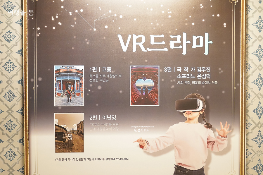 목포 대중음악의 전당의 '모던타임즈' 공간에서는 VR 체험을 통해 100년 전 목포로의 시간 여행을 경험할 수 있다. VR 드라마는 근대 목포의 역사적 인물과 이야기를 생생하게 만나볼 수 있도록 구성되어 있고 체험도 무료이다. VR 기기는 두 대가 마련되어 있어 동시에 두 명이 체험할 수 있고, 체험 시간은 약 5~10분 정도 소요되었다.