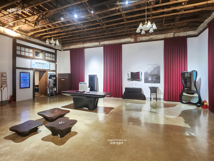 레트로 뮤직카페에서는 근대 음악다방과 의상 체험을 통해 그 시절의 분위기를 느낄 수 있다. 요즘 재미있게 보는 드라마 '정년이' 생각도 나고, 드라마 세트장처럼 잘 꾸며져 있는데 모든 관람이 무료다.