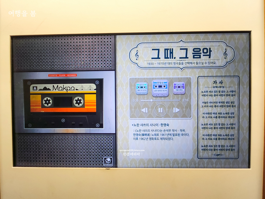 부모님이 좋아하실만한 대중가요도 무료로 들어볼 수 있고, 곡도 많아서 목포 실내 갈만한 곳으로 부모님 취향 제대로 만족시켜 드릴 수 있을 것 같다.