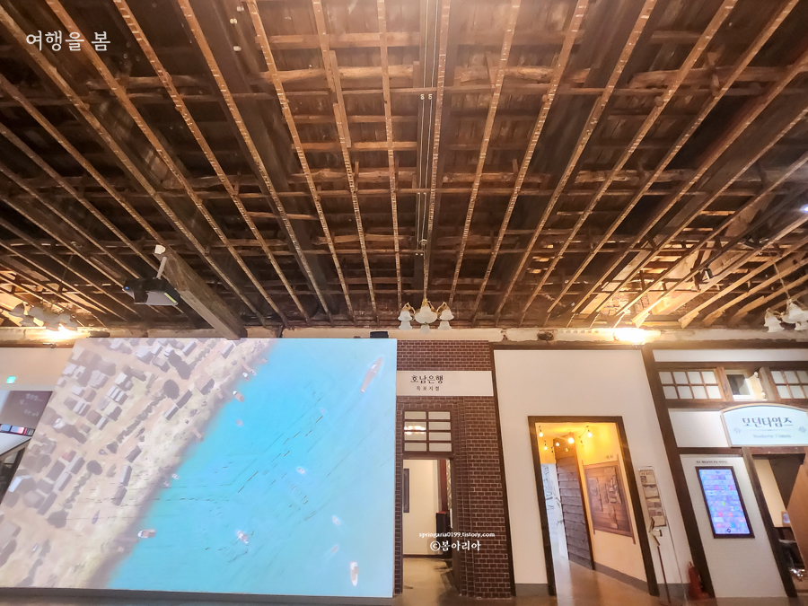 목포 대중음악의 전당 전당 내부는 다양한 전시와 체험 프로그램으로 구성되어 있다. 1층에는 호남은행 목포지점의 역사 관련 자료와 영상을 관람할 수 있으며, '모던타임즈' 공간에서는 VR 체험을 통해 근대 목포의 모습을 생생하게 경험할 수 있었다.