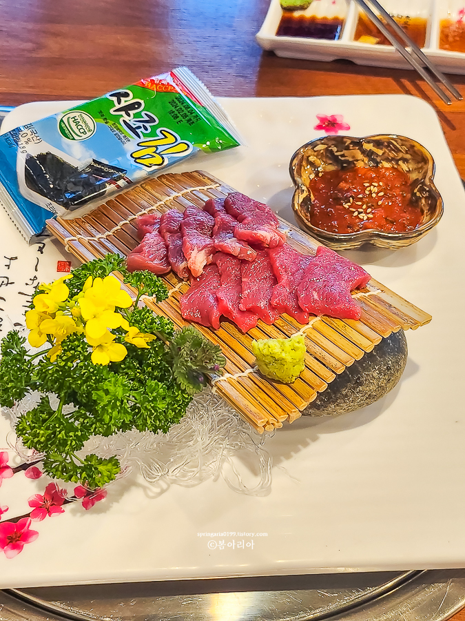 제주도에서 유명한 말고기 맛집인 만큼 말고기가 신선하고 육질이 쫀득하며, 제공되는 여러 소스가 있어 입맛에 맞게 먹을 수 있다.