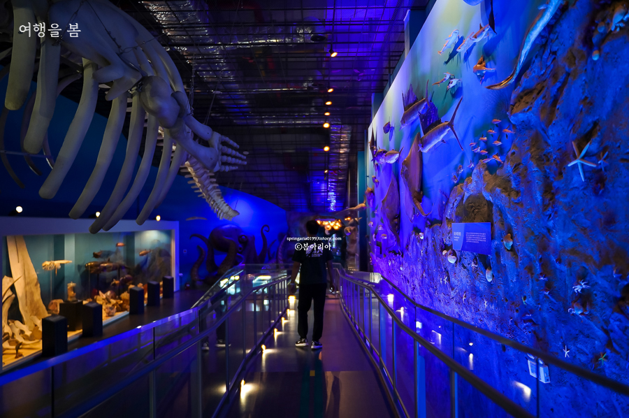 약 15만여 점의 해양 생물 표본을 전시하고 있는데 무엇보다 길이 25m, 무게 3톤에 달하는 대왕고래 뼈 실물이 전시되어 있어 놀라웠다. 개인이 이 많은 것을 어떻게 수집하였는지, 원양어선 선장이었다 하더라도 결코 쉬운 일이 아니었을 텐데 정말 대단하다는 생각만.