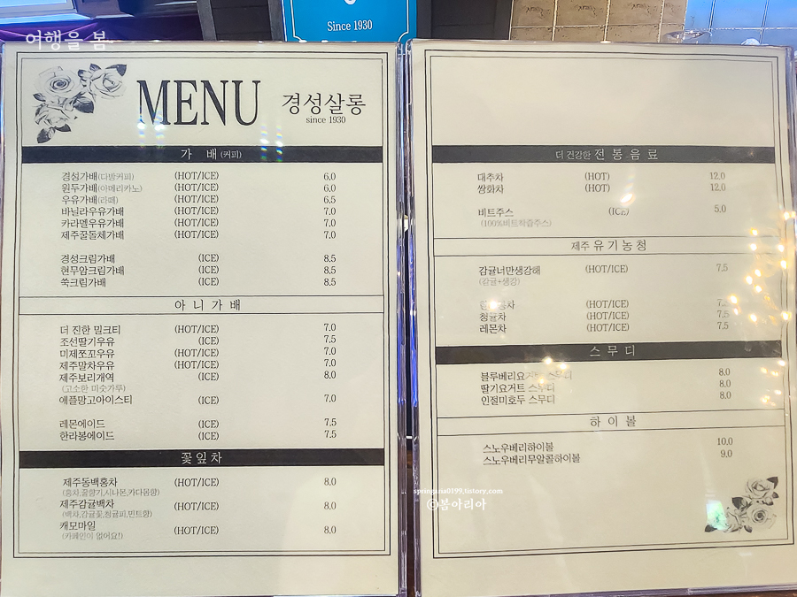 메뉴로는 '경성가배'와 같은 다방 커피 스타일의 음료가 인기있고, 실제로 주문해서 먹어보니 맛도 괜찮았다.