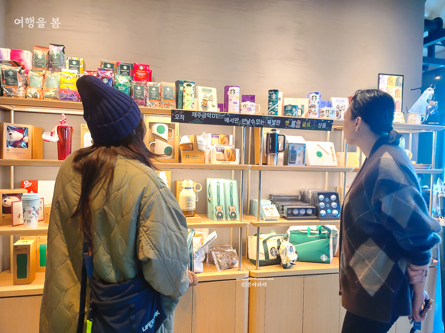 머그컵, 텀플러, 지역한정상품 등을 구매할 수 있는 스타벅스 MD 진열대도 좁은 편은 아니고, 제주 금악 스타벅스 한정 아이템도 있다.