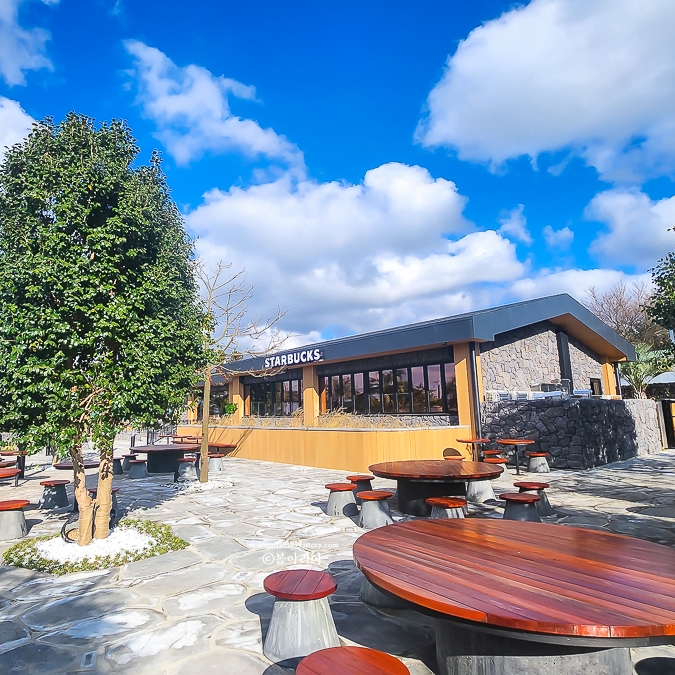 동백나무와 돌담 등이 어우러져 제주도의 느낌을 잘리고, 스타벅스의 마스코트인 베어리스타를 테마로 한 '베어리스타 하르방'포토존이 있다.