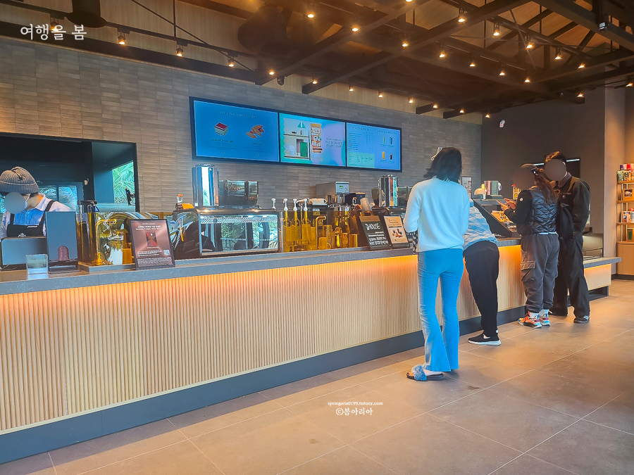 스타벅스 마트코트인 베어리스타 하르방이 있는데 진짜 다들 넘 귀엽게 만들어졌고, 특히 보드 타는 아이가 나름? 힘껏? 팔다리를 뻗은 모습이 귀여웠다. 1층과 2층까지 주차장이 넓게 있고, 2층은 주차장과 야외 좌석이 정말 많다.