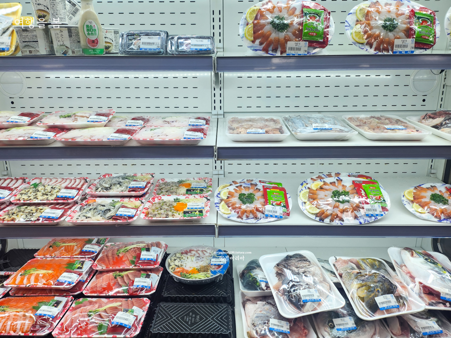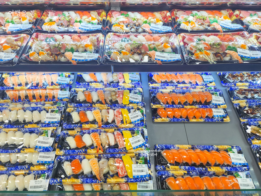 초밥도 종류별로 많다. 초밥은 이마트에 비해 가격이 비쌌는데, 회의 맛이 이마트와 비교불가라서 초밥도 분명 더 맛있고 신선할 거다.