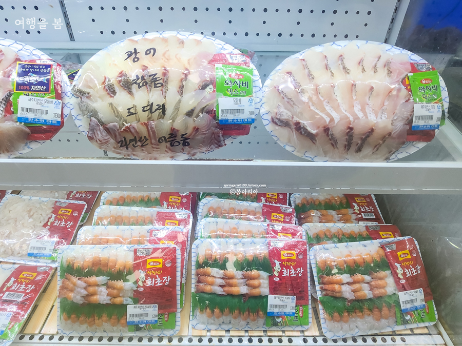 회 종류가 정말 많고 딱새우회도 있다. 붙어있는 가격을 보면 동문시장이나 올레시장에 비해 저렴.