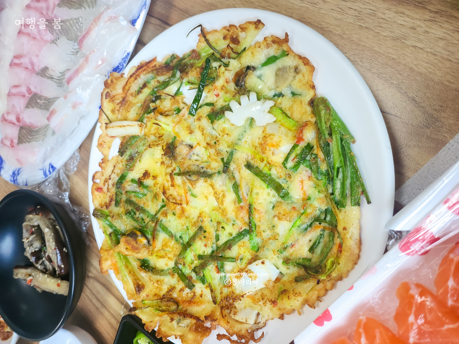 - 3인 이상 상차림시 해물부침개 서비스. 아주 맛있음.
