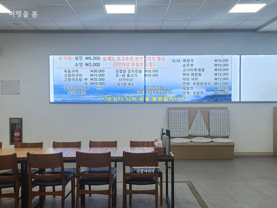 2층에 협재관광식당이 있다. 상차림비용은 1인 6천 원. 가격만 확인해 둔다. 한림수협 수산물시장, 활어센터, 식당 이용하는 방법과 가격까지 순서대로 소개한다.