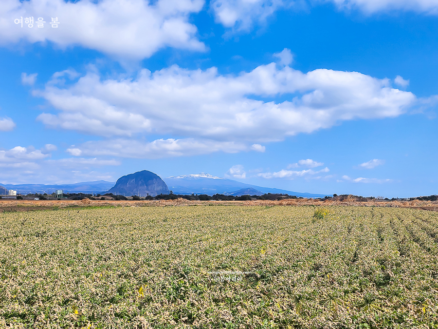 대정읍 쪽은 하우스는 적고 밭이 많아 풍경이 아주 좋다. 제주도 올레길 10코스는 그런 밭을 통과하는 구간이 많아 그늘이 적다. 따라서 더워지기 시작하는 6월 이후부터는 걷기 힘든 구간이 된다. 평지 구간이라 운동화도 충분하며, 겨울이더라도 화창한 날에는 챙 넓은 모자가 필수다. 아직은 겨울과 봄의 경계였지만 대정의 밭들은 싱싱한 푸른빛으로 가득 차 있고, 눈 쌓인 한라산과 계절을 달리 한다.