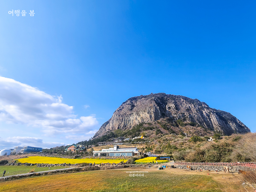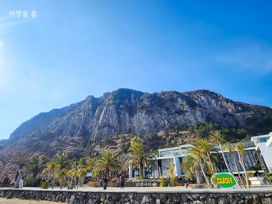 유채꽃 필 무렵이면 이 일대에서 가장 인기 있는 소색채본 카페. 멀리서 보아도 카페 안에 사람이 꽉 찼다. 유채꽃 뷰 1등 카페 소색채본. 제주도 올레길 10코스를 다 걷지 않고, 산방산 근처에만 있어도 볼거리가 많아 하루 일정이 꽉 찬다. 용머리 해안은 제주도 서쪽 여행 코스를 계획했다면 다른 곳 다 포기하더라도 꼭 가봐야 하는 곳.