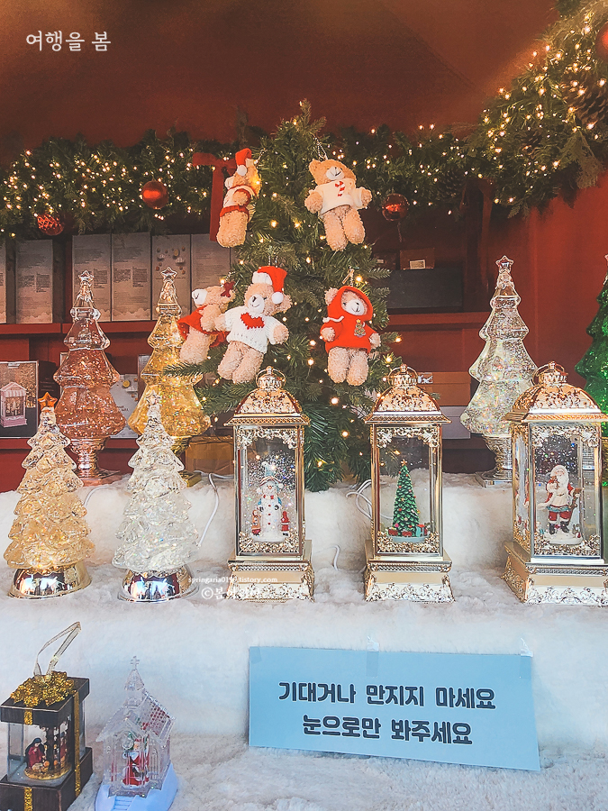 관람시간은 약 30분 정도 소요된다. 작은 공간이 다양한 소품 & 분위기로 꾸며져 있어 방에서 방으로 건너갈 때마다 유럽의 작은 마을 크리스마스를 파도 타듯 구경하는 느낌이다. 저기에 있는 감성 소품들은 모두 유럽에서 온 찐~ 물건들이라서 가격이 막 저렴하지는 않다.